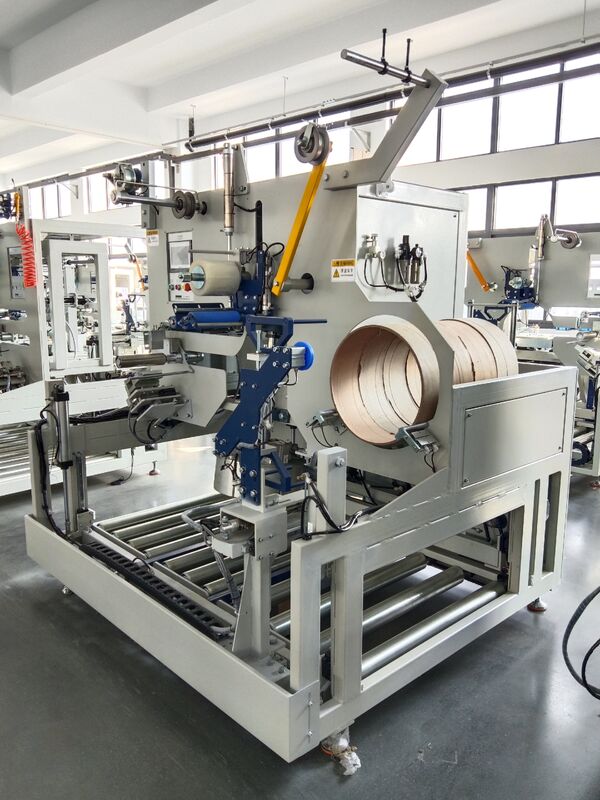 เมื่อชุดพันสายรัดถึงเส้นรอบวงที่ต้องการแล้ว จะถูกห่อด้วยฟิล์มโดยเครื่องพันในตัว และถูกเอียงโดยระบบขนส่งในตัวจากเครื่องพันลงไปยังสายพานลำเลียงลูกกลิ้งด้านล่าง ในเวลาเดียวกัน ท่อพันใหม่จะถูกป้อนจากนิตยสาร และชุดถัดไปจะถูกพันโดยอัตโนมัติเต็มรูปแบบ